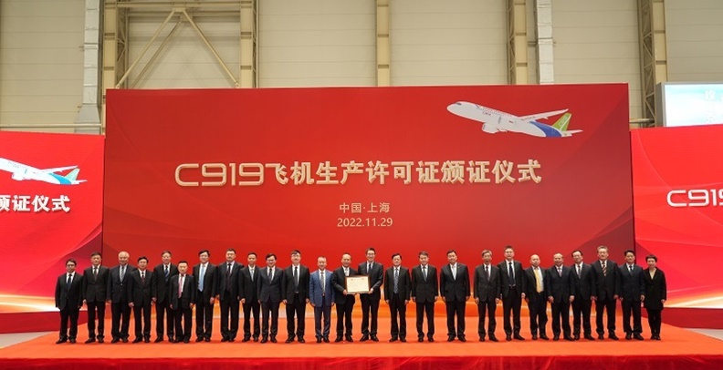 民航华东地区管理局29日向中国商飞公司颁发了国产大飞机C919的生产许可证。这标志着我国具备了批量生产制造大型客机的能力,为拉动民航制造业全产业链发展提供了条件。